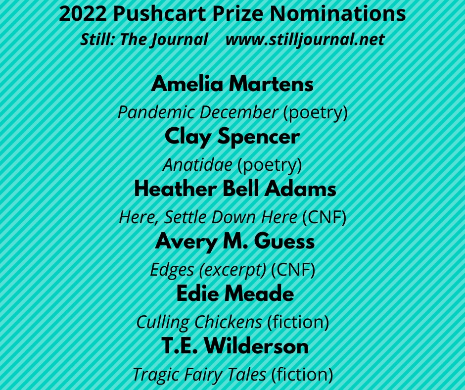 Honored to be nominated by Still: The Journal for a 2022 Pushcart Prize!